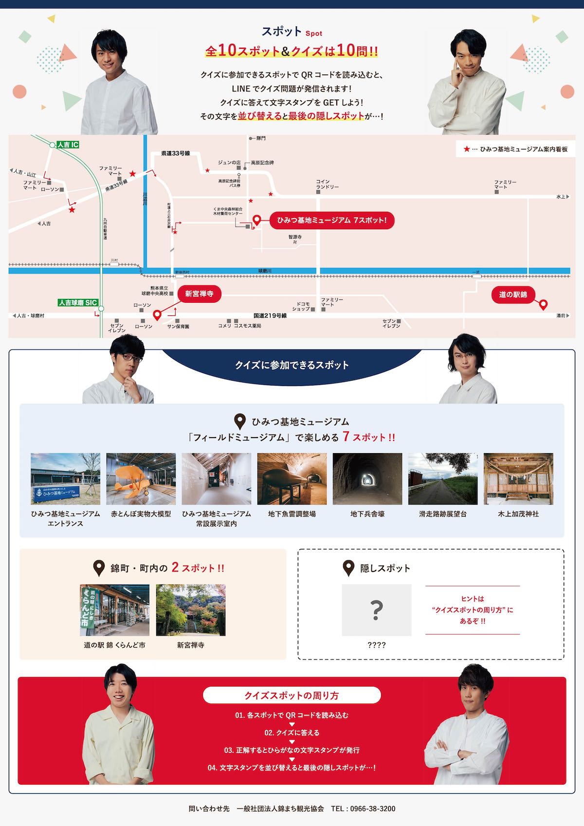 「QuizKnockからの招待状!時をかけるクイズ旅in 熊本県・錦町」は、テレビ番組等で人気を誇る伊沢 拓司さん率いる東大発知識集団「QuizKnock」が人吉海軍航空基地及び錦町にまつわるクイズを監修。