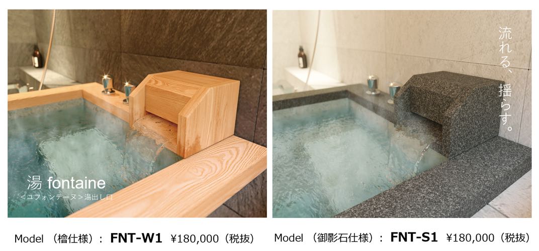 今回紹介するのは、天然檜材を贅沢に使用し、五感で癒す「湯浴み」の世界を演出する「湯出し口」「湯灯り」「湯風呂蓋」の3種類。