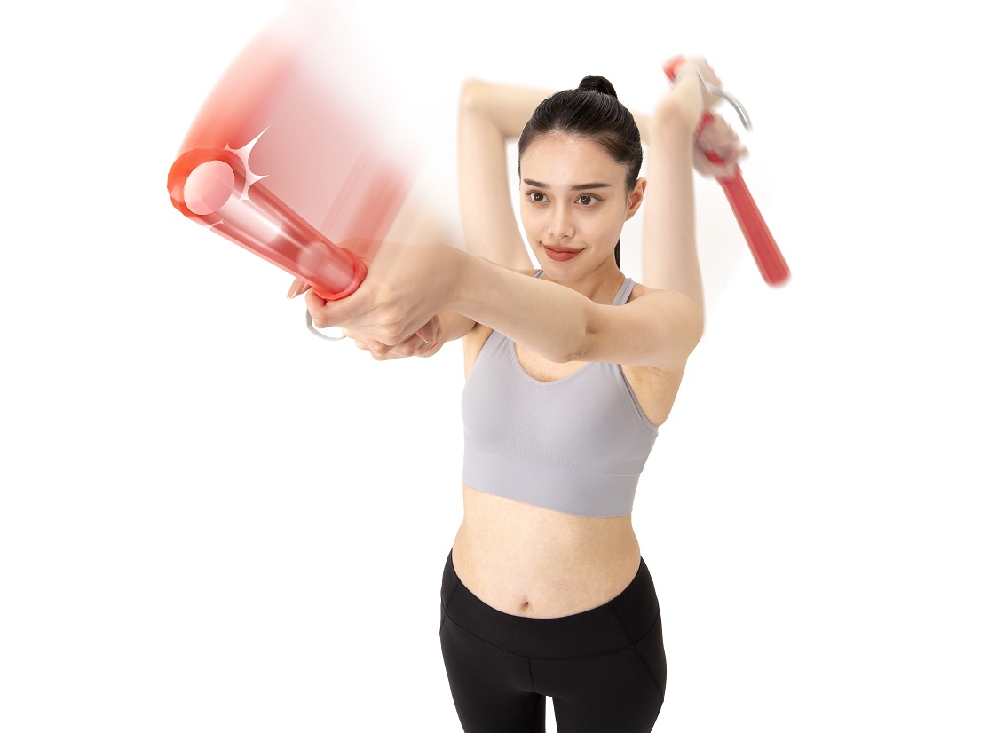 「フリエット」は、剣道の素振りのように、両腕を大きく振りかぶって力強く振り下ろす動きで、楽しく鍛える筋トレグッズ。