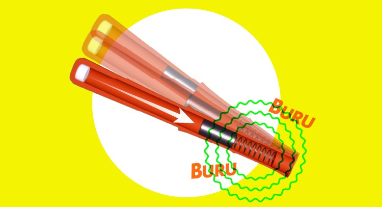 振ると、おもりがスライドしてバネにぶつかり、この時の衝撃で《振動》するしくみになっています。