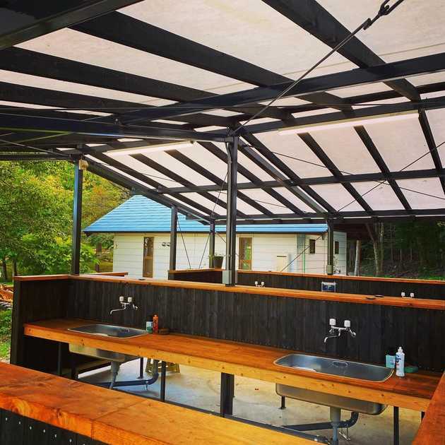 炊事棟は温水完備でより快適になりました。