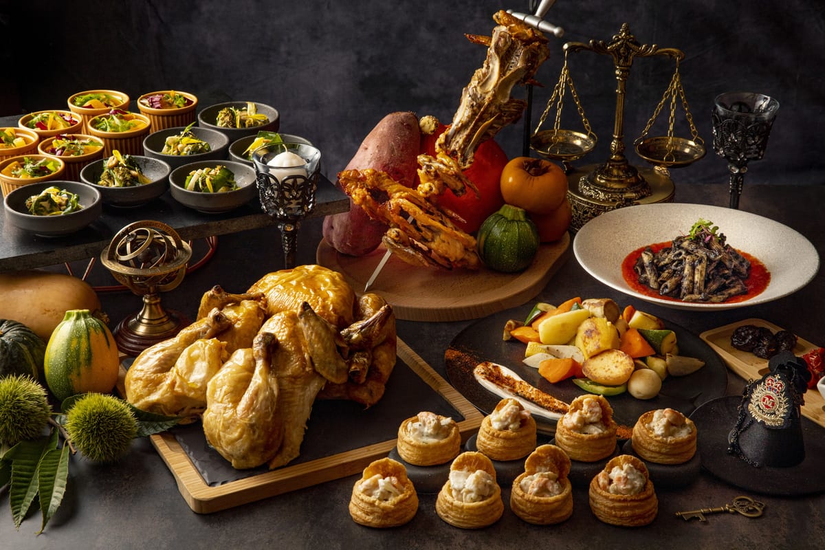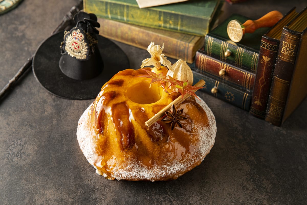 2022年のハロウィーンシーズンを盛り上げる魔法が詰まったフェアでは、ヒルトン東京 エグゼクティブ・ペストリーシェフ 播田修(はりたおさむ)氏が手掛ける20種類のマジカルスイーツに加え、シェフが目の前で切り分ける「ローストチキン ドライトマト・プルーンソース」や、下級生魔法使いが執事としてトレーサービスする海老クリームパイ「ヴォローヴァン」など10種類の料理が登場。