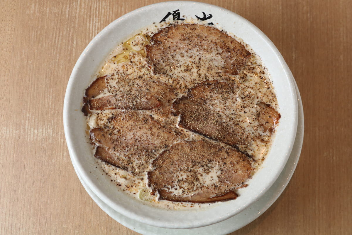 燻製により風味を増した自家製チャーシューとたっぷりの黒コショウによる味の広がりも特徴的です。
