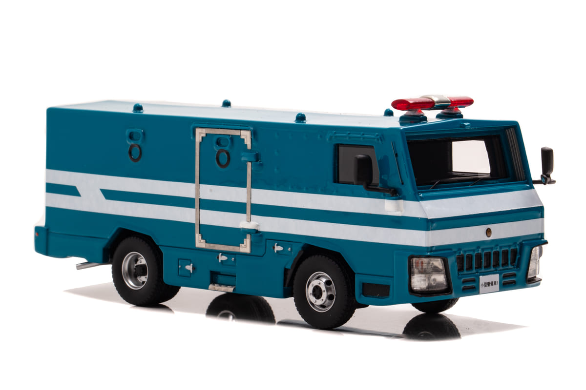 機動隊のカラーリングや赤色灯などを1/43スケールで再現した限定500台のミニカーです。