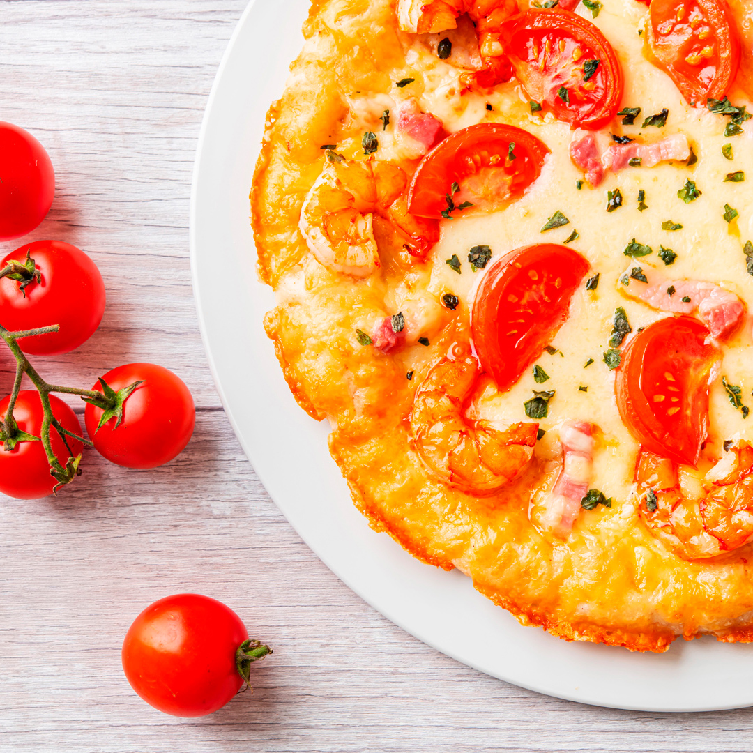 ブラックタイガーエビと旬のトマト、イタリア産モッツァレラチーズがたっぷり!