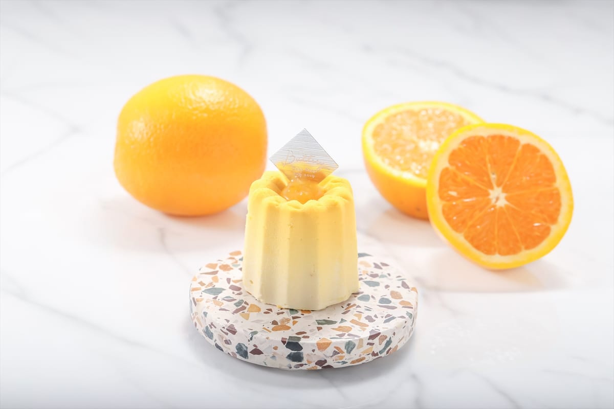 カヌレをイメージしたフォルムとオレンジジャムが、夏を感じさせる可愛い新作スイーツとなっております。