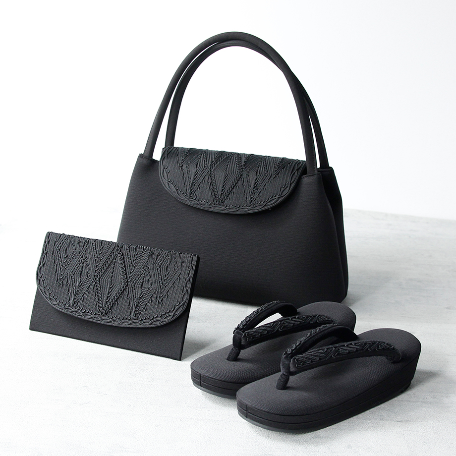 晴れの日も、もしもの時も兼用で使える凛としたバッグや草履。