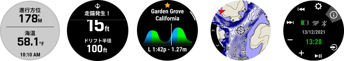 また、ウォッチフェイス上で潮流データやアンカーに関する警告など重要な情報に素早くアクセス。