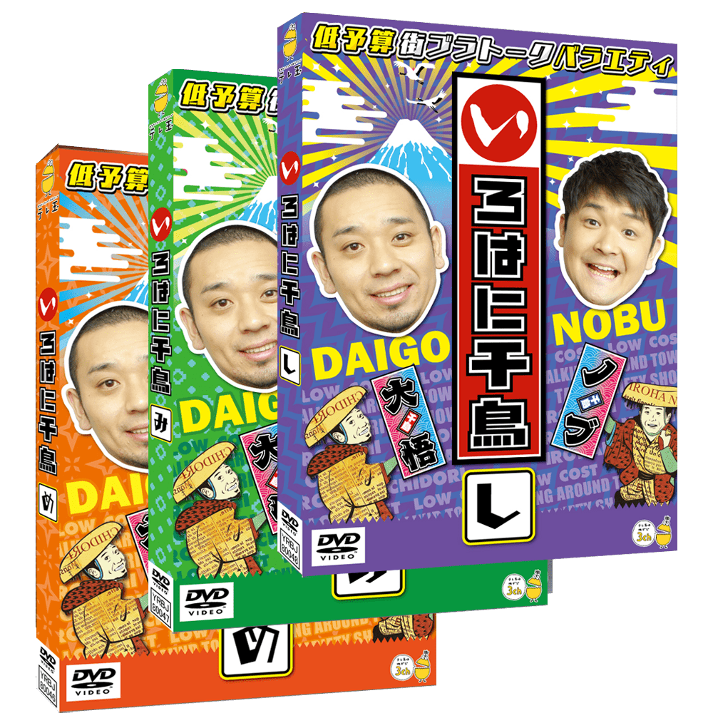 テレ玉を含む全国28局で放送中の低予算街ブラトークバラエティ「いろはに千鳥」の新作DVD(め)(み)(し)の3巻同時発売が決定!