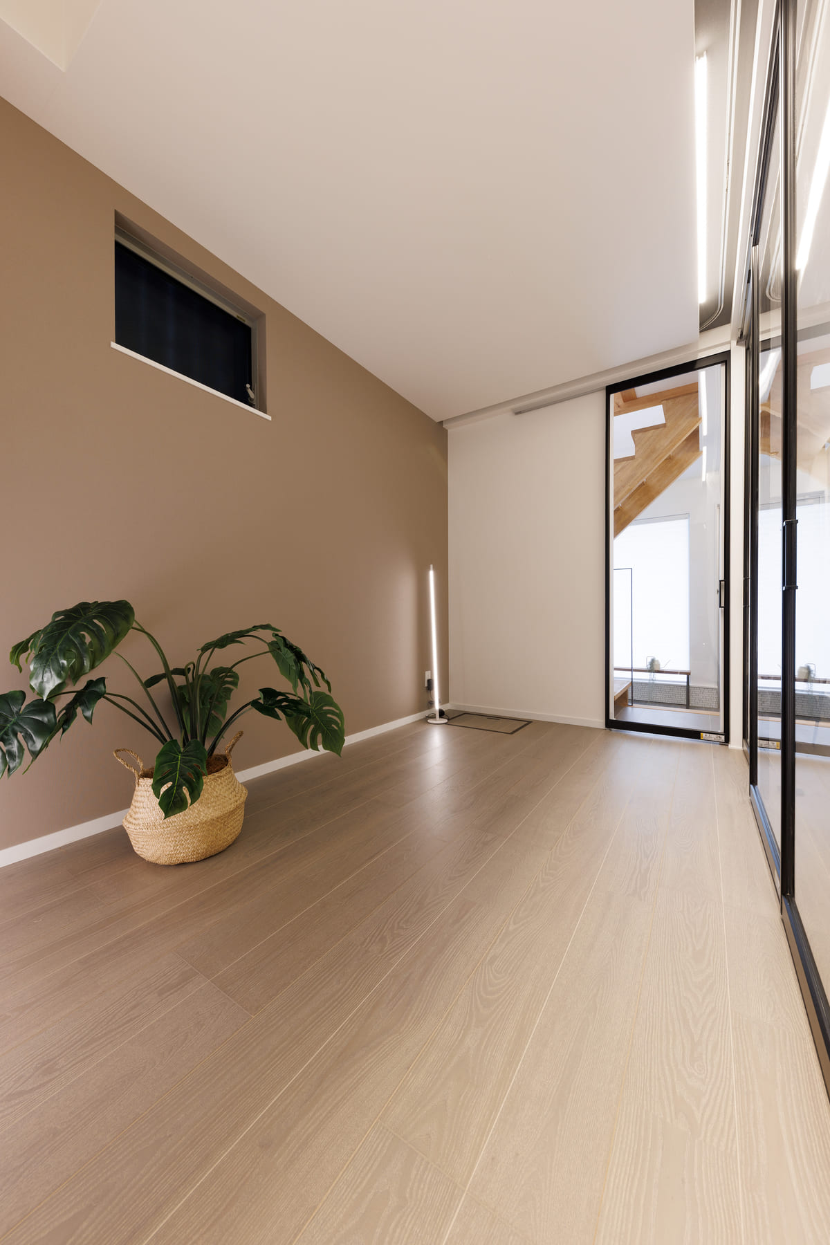 ガラスの仕切りを備えた4.5帖ほどの空間で、リモートワークをするもよし、ネイルやエステのサロンを開業するもよし。