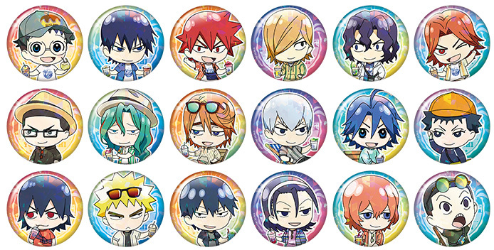 『弱虫ペダル』のキャラクター達のミニキャラがデザインされた缶バッジ。