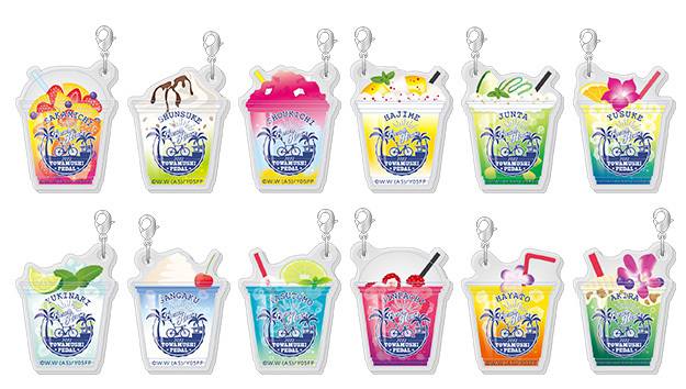 描き下ろしイラストでキャラクター達が飲んでいるドリンクをイメージしたアクリルチャーム。