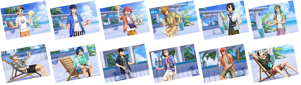 爽やかない衣装に身を包んだキャラクター達が夏らしいイラストです☆