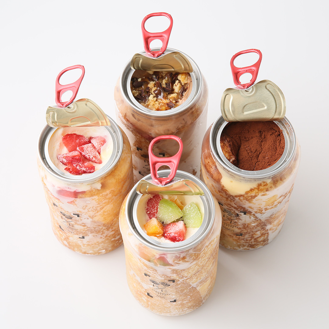 ふわとろクリーム、自家製ゼリー、特製ソースや各フレーバーとの相性の良い食材を何層にも重ね合わせた専門店だからこそできるクレープケーキ缶を楽しめます☆