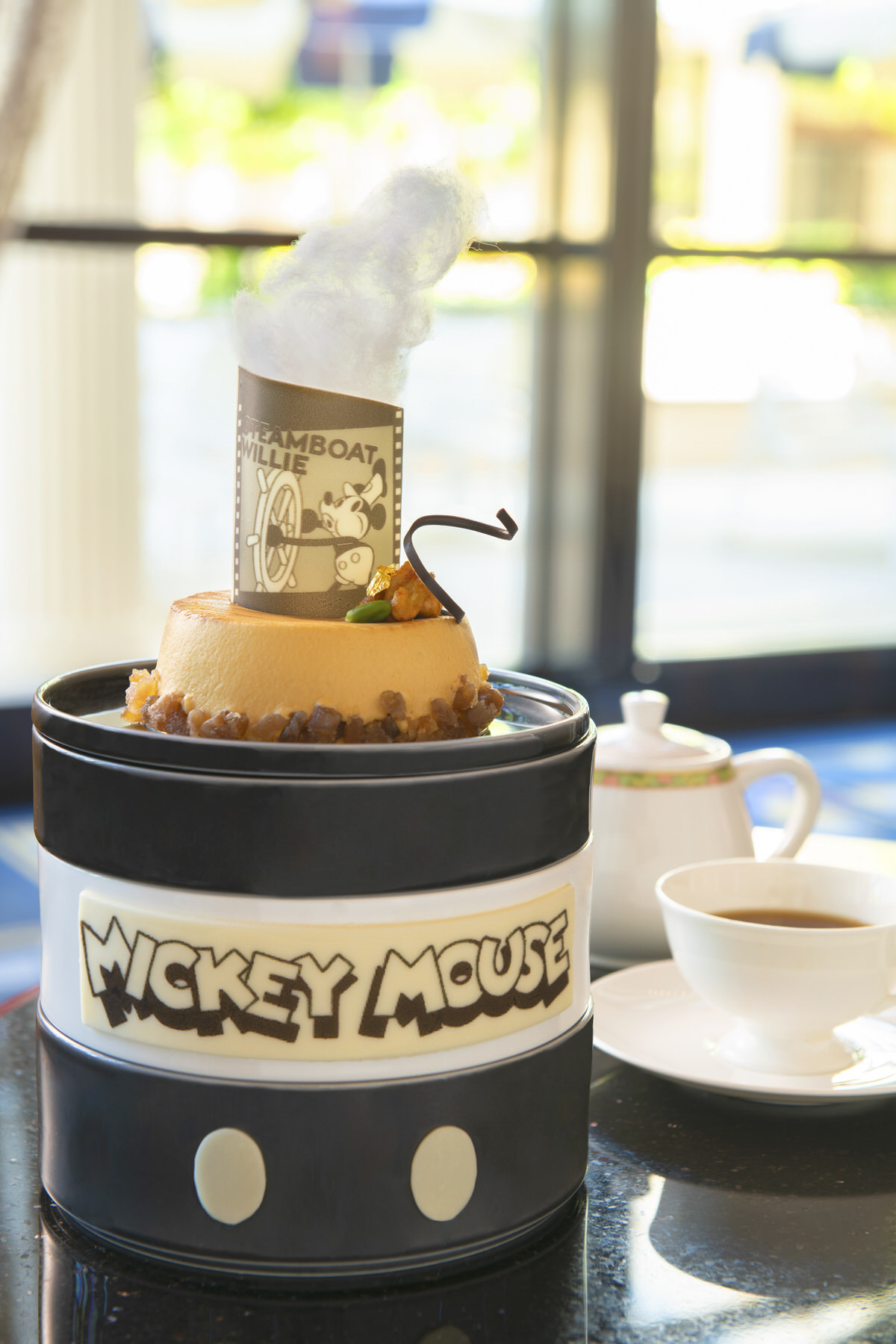 最上段の「栗のシフォンケーキ」は『蒸気船ウィリー』のワンシーンをフィルムのように仕立て、蒸気がもくもくと出ている様子もスイーツで表現しています。