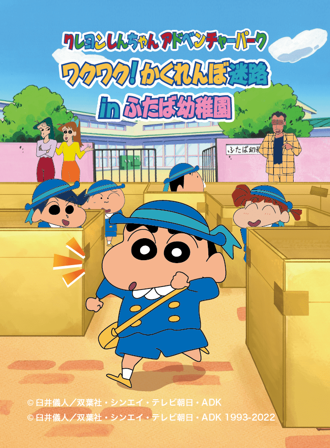 兵庫県立淡路島公園にあるアニメパーク「ニジゲンノモリ」内にある「クレヨンしんちゃんアドベンチャーパーク」に、野原しんのすけが通う『ふたば幼稚園』を再現した新エリアが2022年9月にオープン。