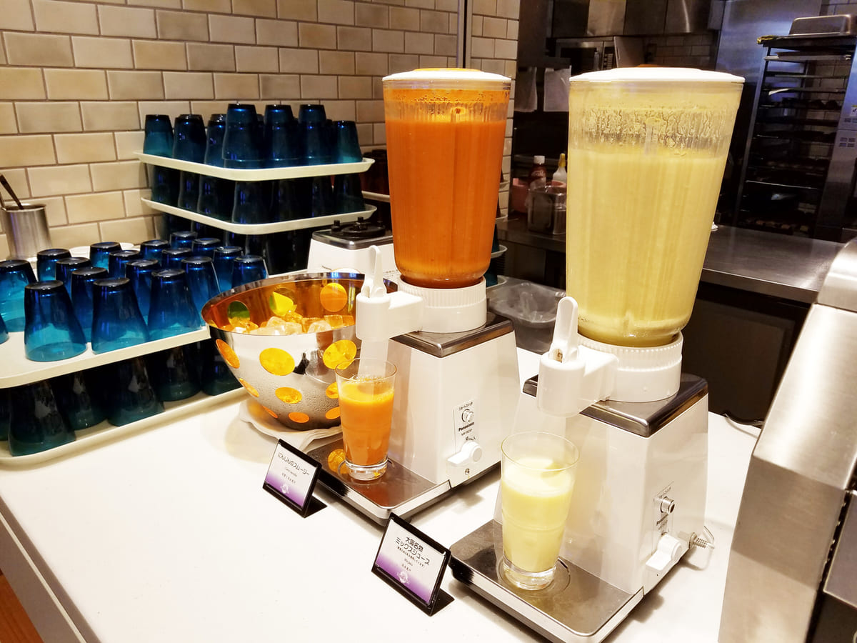 専用のミキサーでは、「にんじんのスムージー」と「大阪名物 ミックスジュース」を提供。
