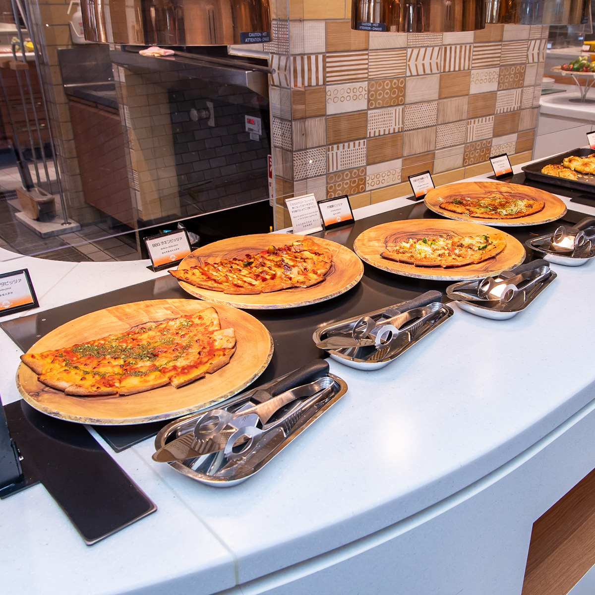 ピザ工房をイメージしたブッフェエリアでは、自慢の石窯で焼き上げるピッツァをはじめとしたバラエティー豊かな食の楽しさが詰まったメニューが提供されています。