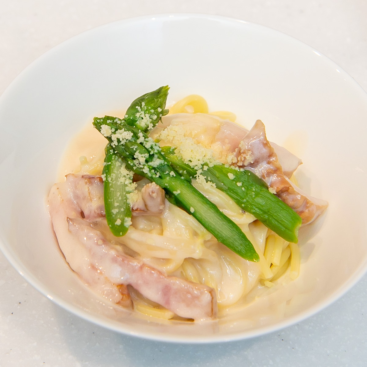 • ベーコンとアスパラのクリームスパゲッティ