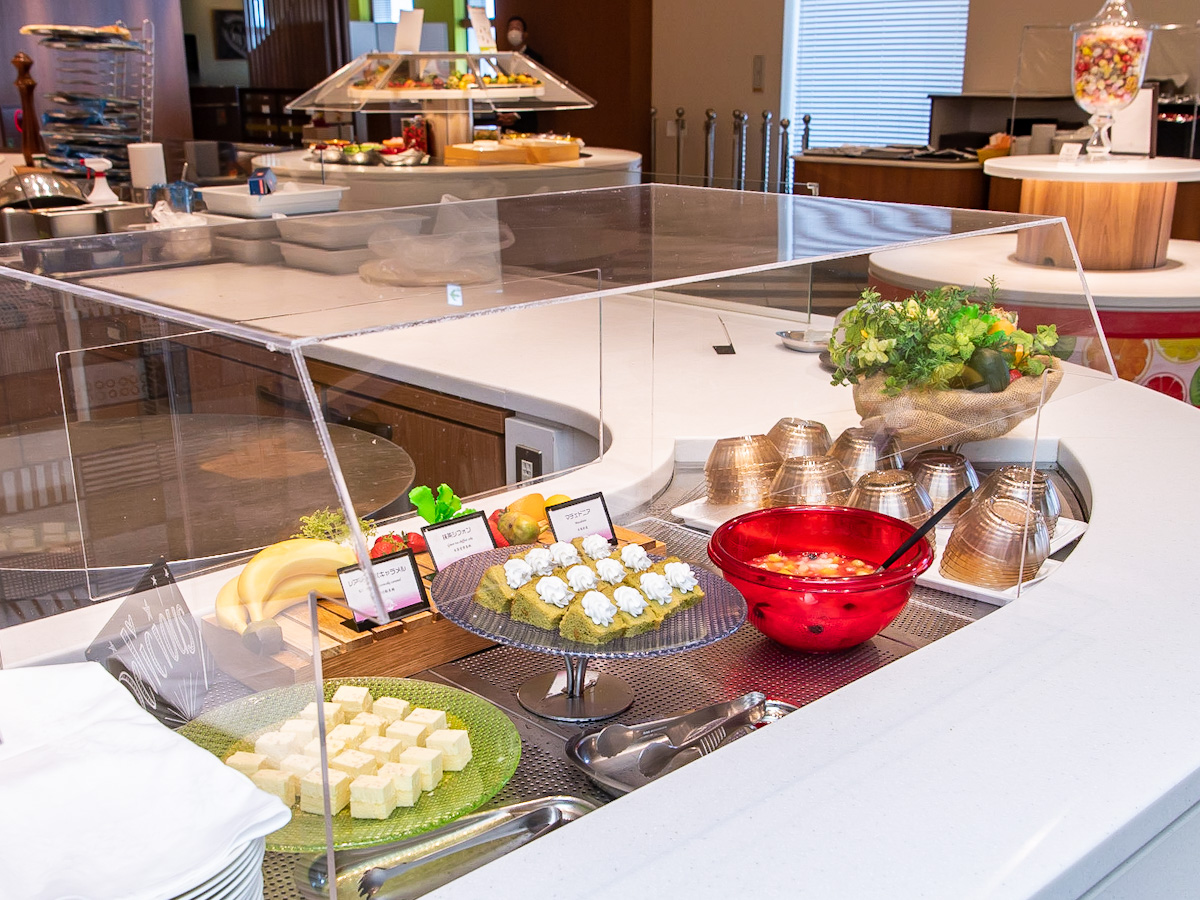 ブッフェ台にはアクリル板設置などを行うなどの対応を行っています。