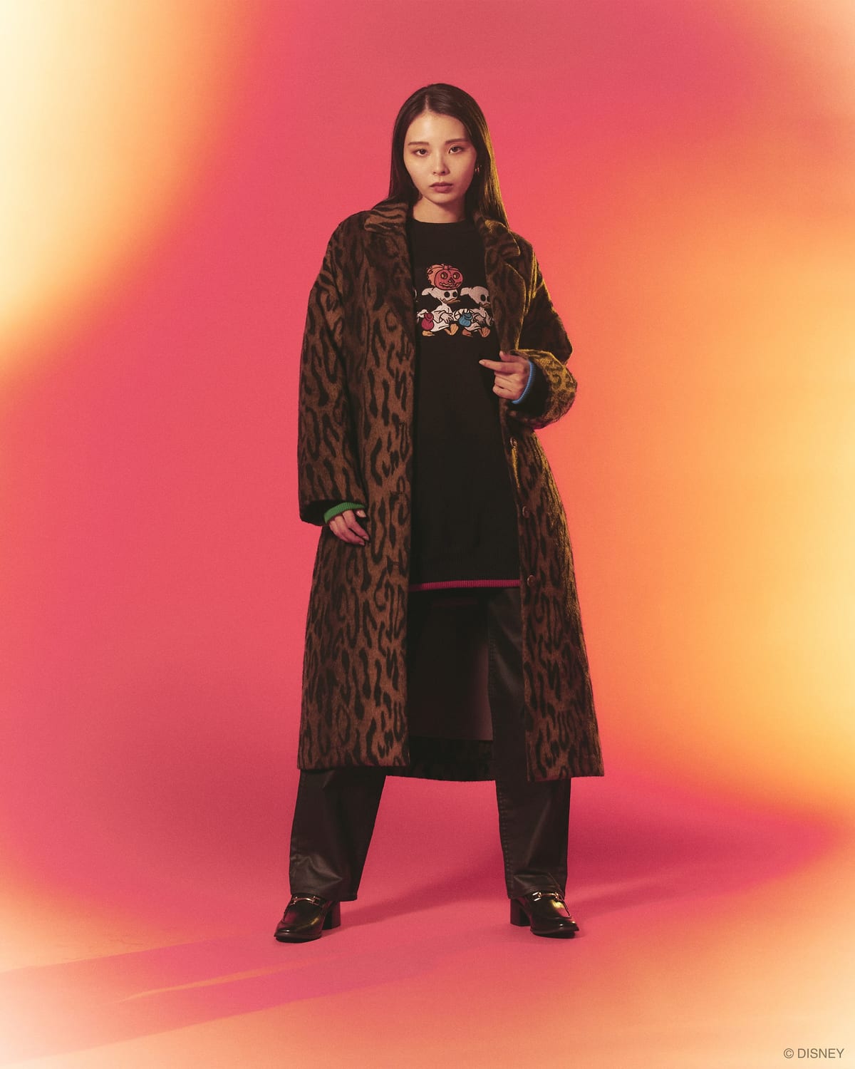 カラシ色のシャギーニットに大胆に描かれた「ミニーマウス」の顔がインパクト大なプルオーバーや、