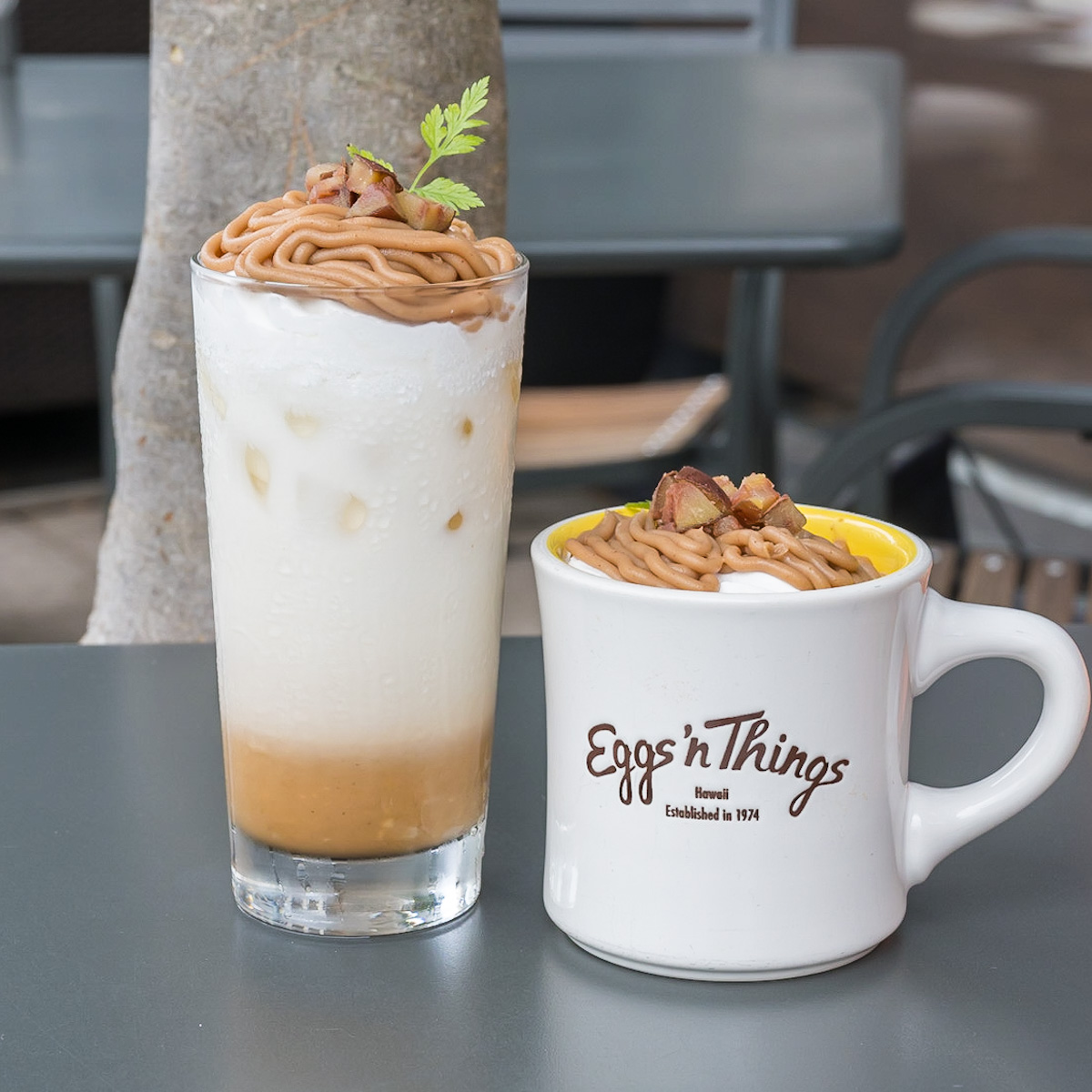 Eggs ’n Things「モンブランパンケーキ/モンブランラテ」2