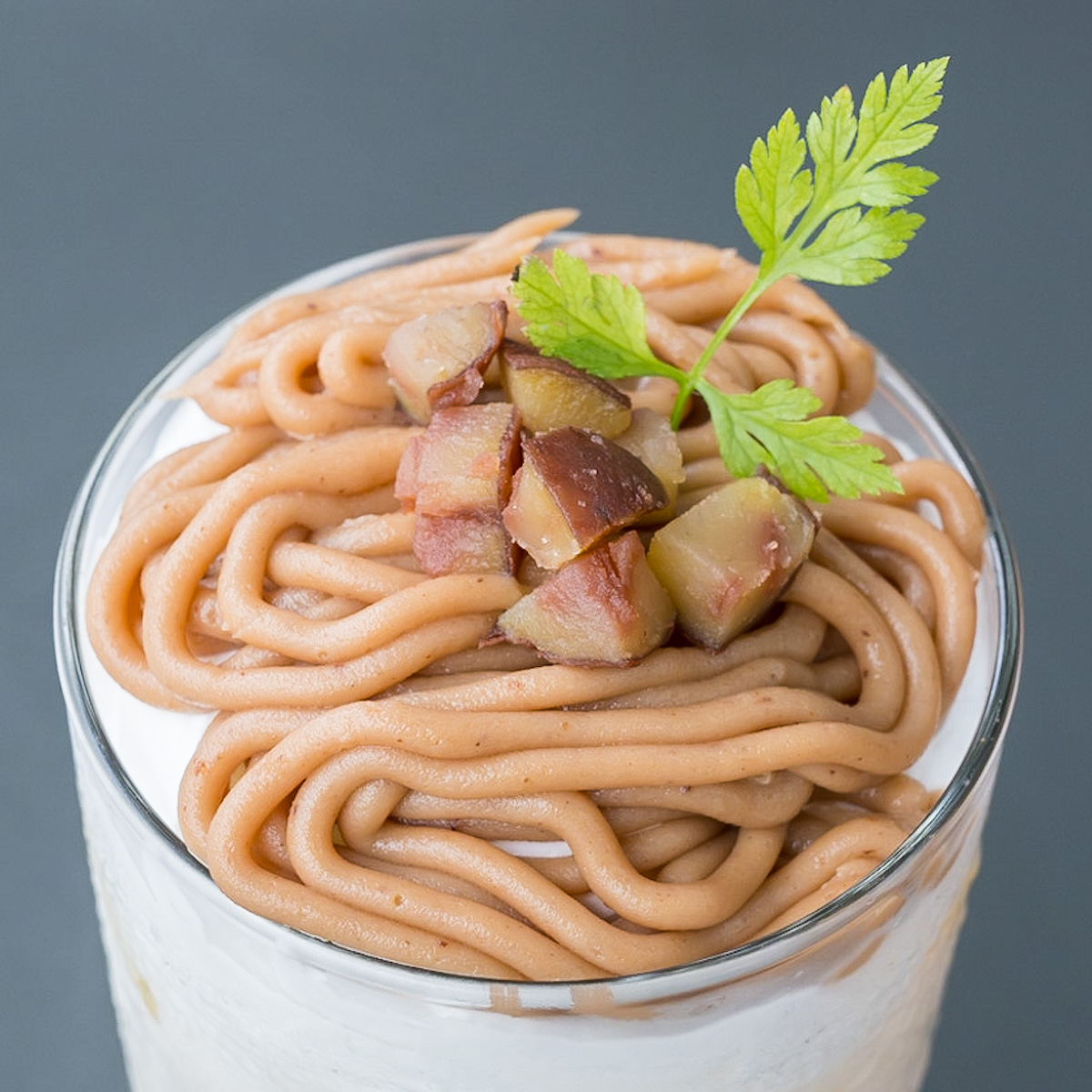 モンブランクリームとトッピングされた栗をパフェのようにすくっていただくのもおすすめです。