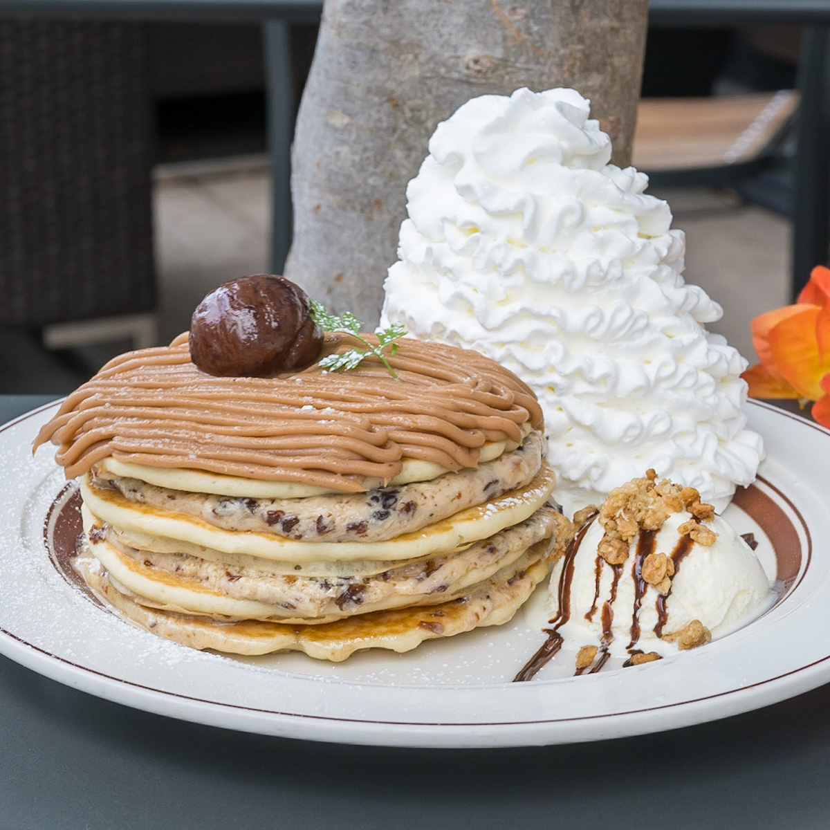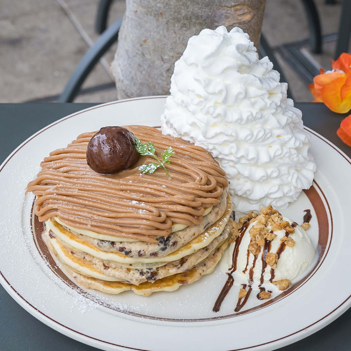 Eggs ’n Things「モンブランパンケーキ」ラムレーズン