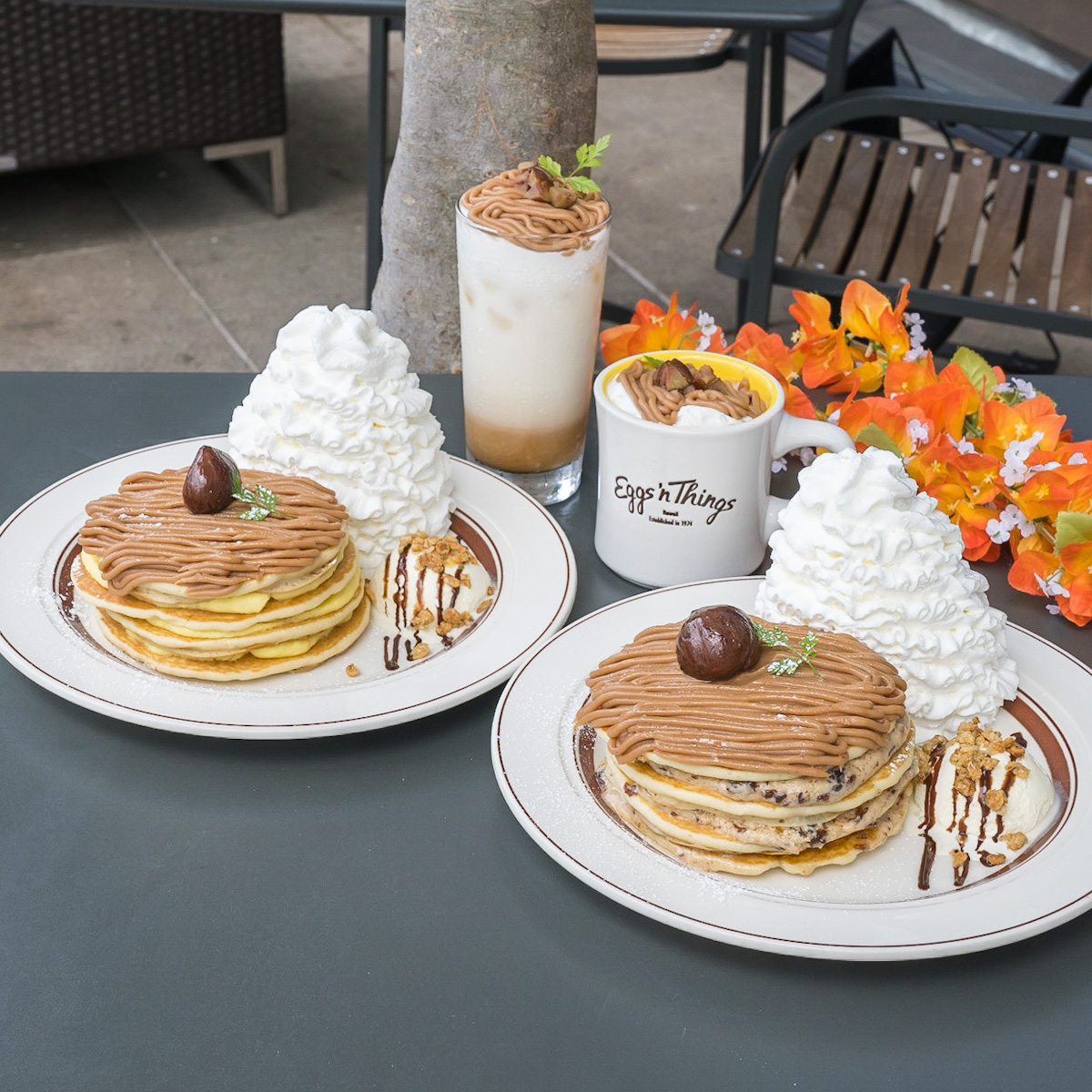 Eggs ’n Things「モンブランパンケーキ/モンブランラテ」