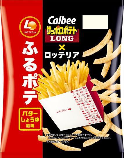 「サッポロポテト LONG ロッテリアふるポテバターしょうゆ風味」は、ロッテリアの人気サイドメニュー「ふるポテ(バターしょうゆ風味)」をカルビー「サッポロポテト LONG」で再現。