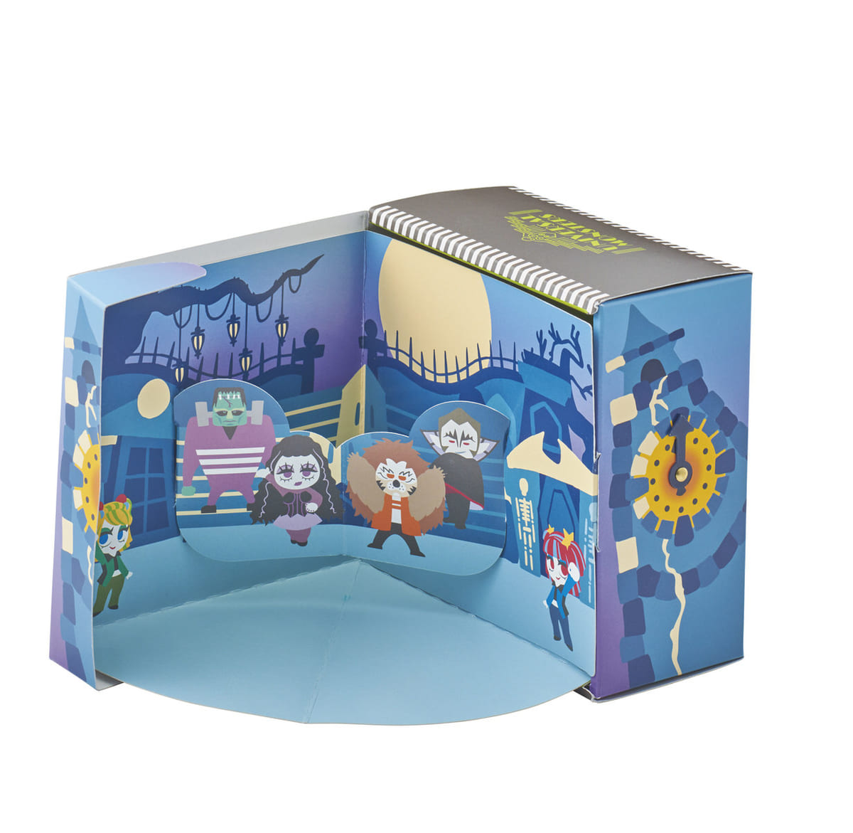 箱を開くと「ユニバーサル・モンスター・ライブ・ロックンロール・ショー」のステージのようになるアソートスウィーツ。