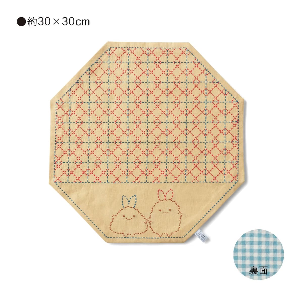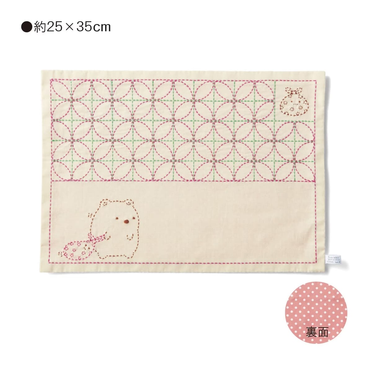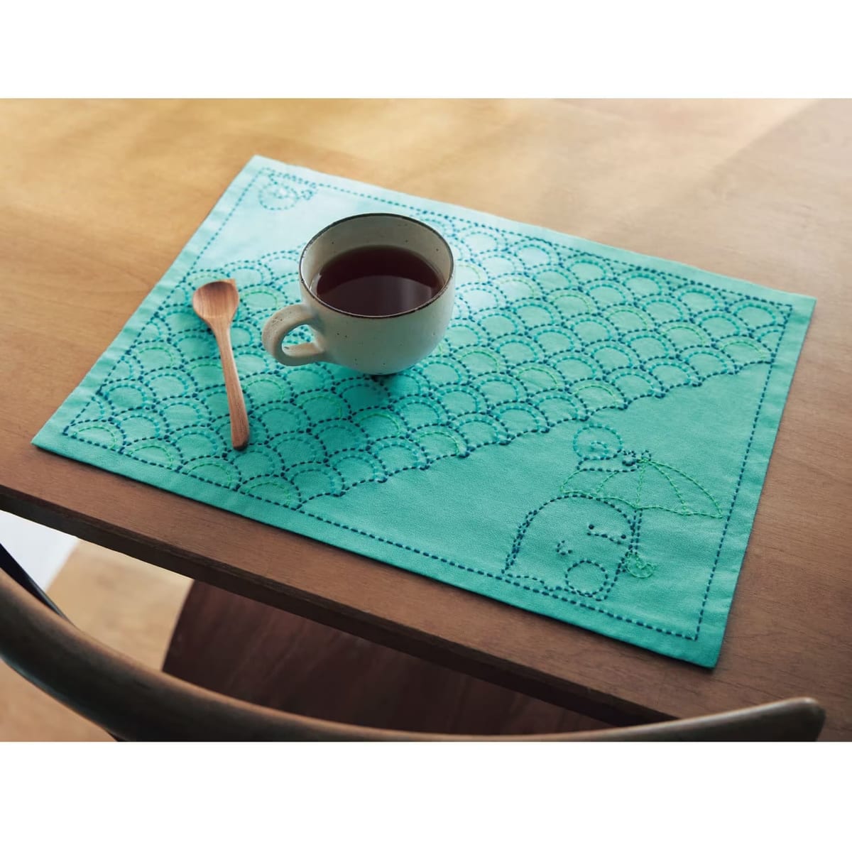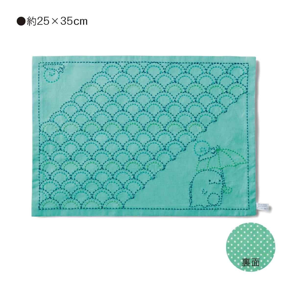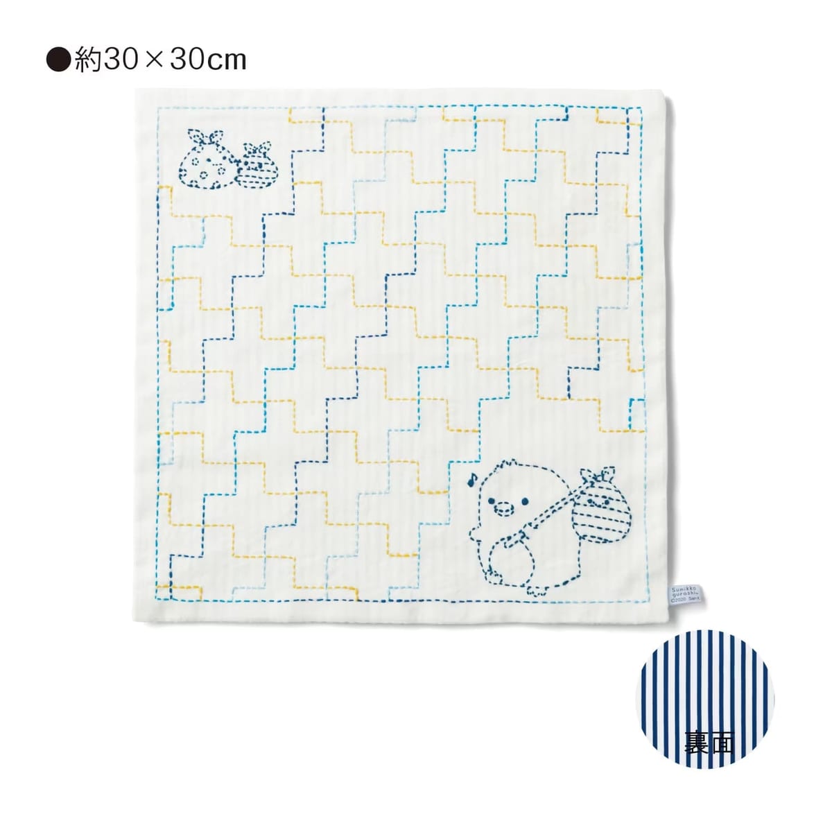 完成した「すみっコぐらし」の刺し子のクロスは、生活になじむ素朴な仕上がりです。