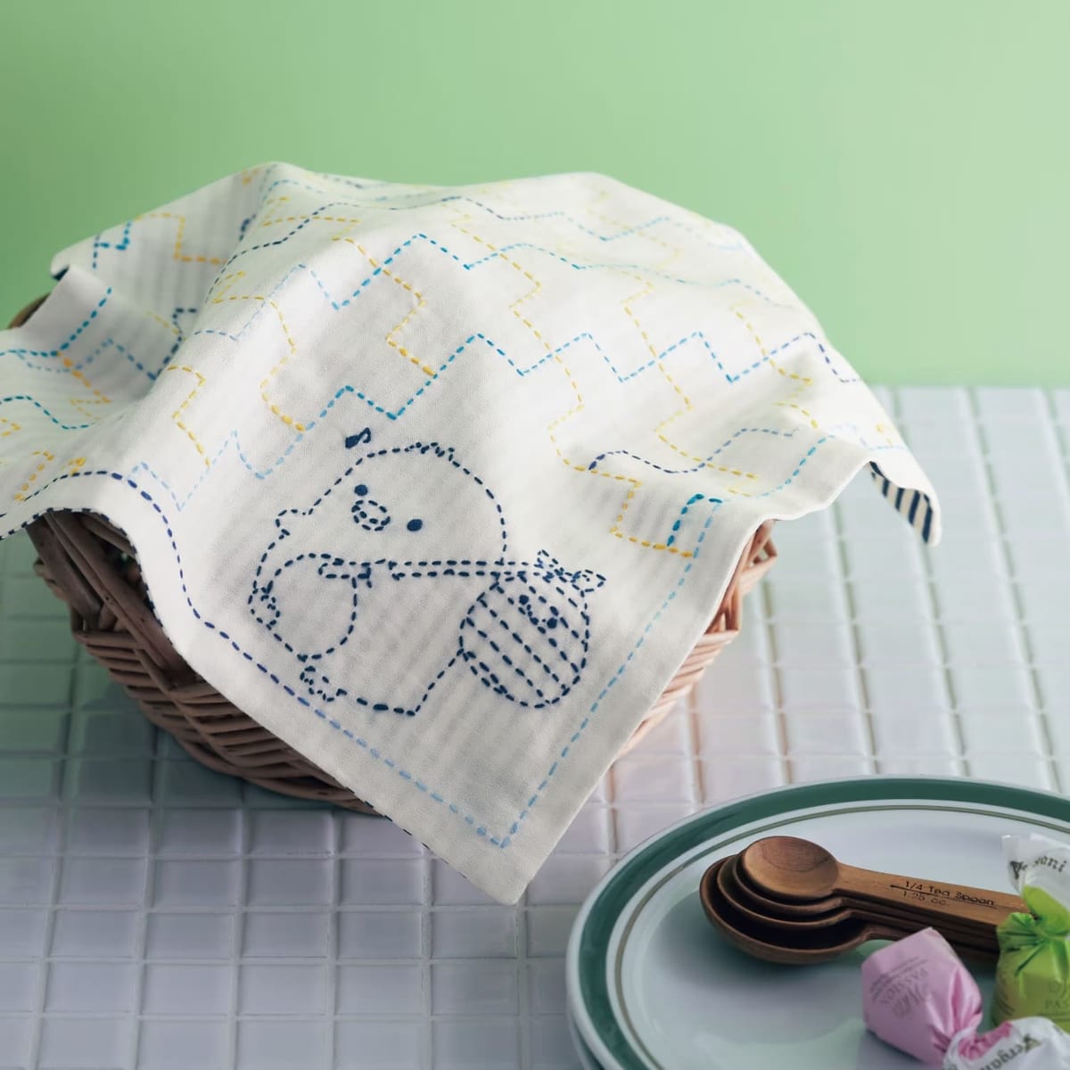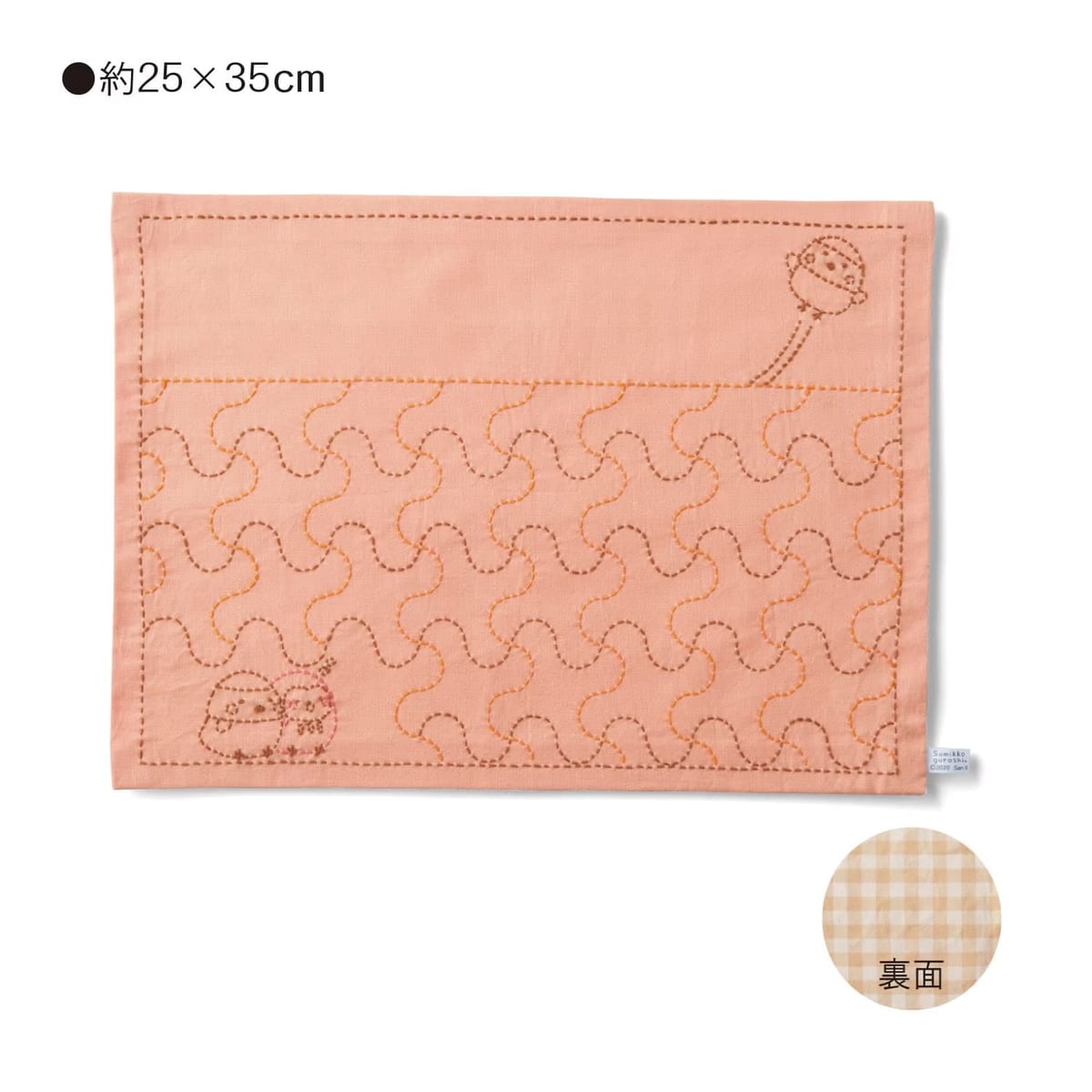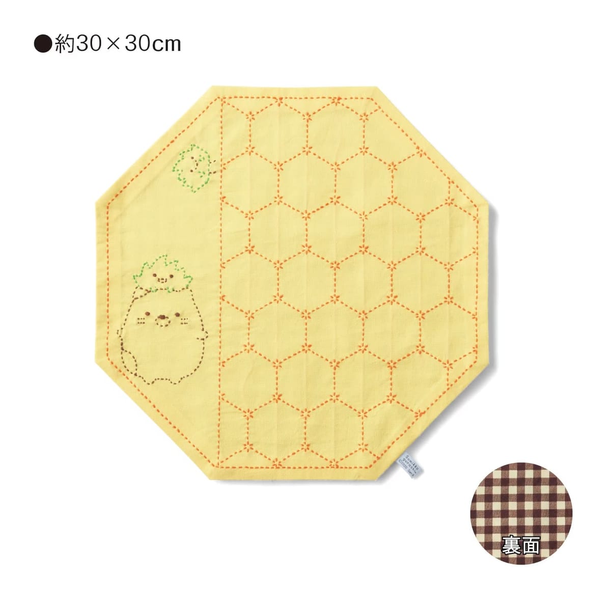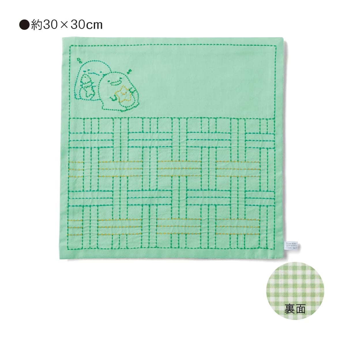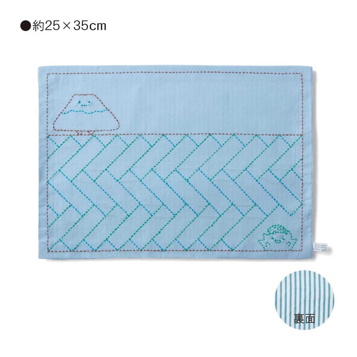 完成した「すみっコぐらし」の刺し子のクロスは、生活になじむ素朴な仕上がりです。