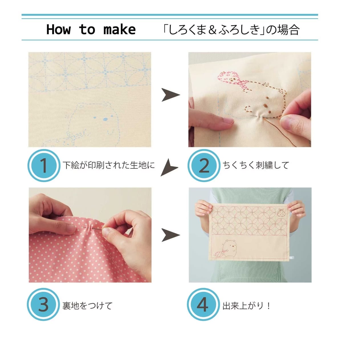 ベルメゾン「すみっコぐらし」刺し子の花ふきん手作りキット 作り方