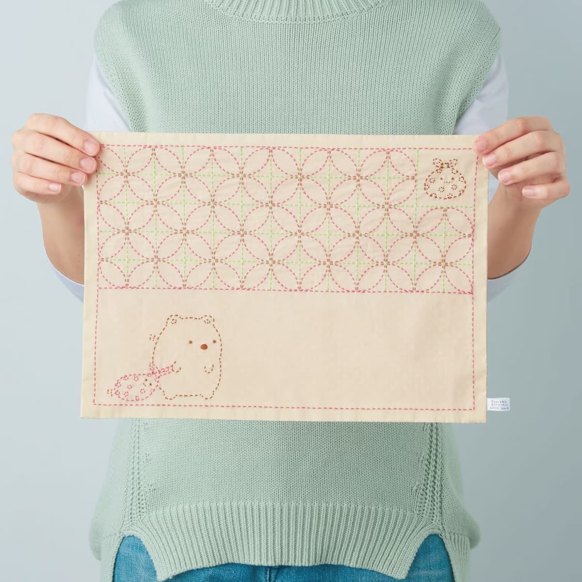 「すみっコぐらし」のキャラクターと、日本で古くから親しまれてきた刺し子の伝統柄を組み合わせた新鮮なデザインです。