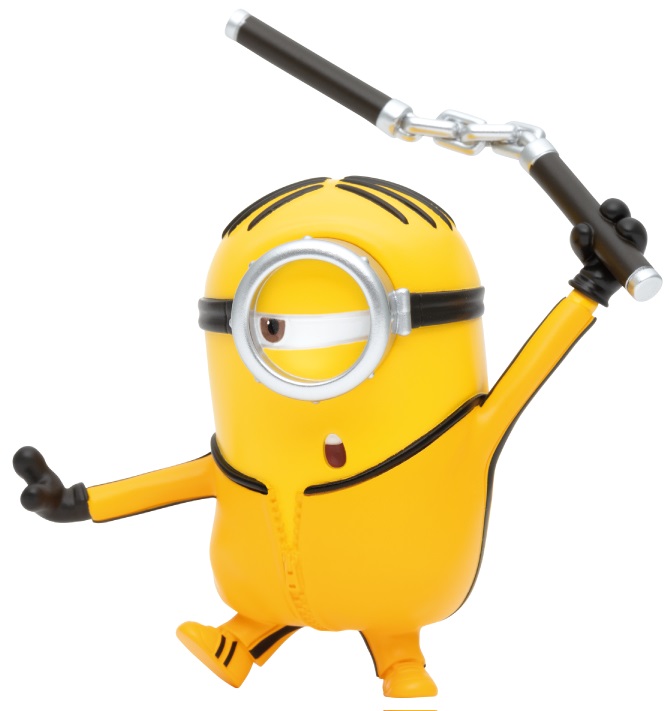 作中で登場するカンフースタイルの「ミニオン」もラインナップしており、「ティム」振りかざす「ボブ」や