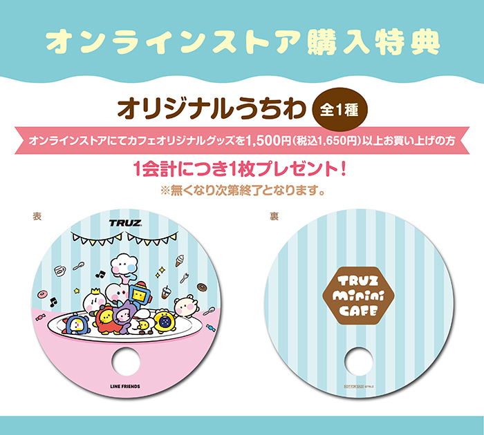 オンラインストアでは、カフェオリジナルグッズを1,500円(税込1,650円以上)お買い上げの方に「オリジナルうちわ(全1種)」が1会計につき1枚プレゼントされます☆