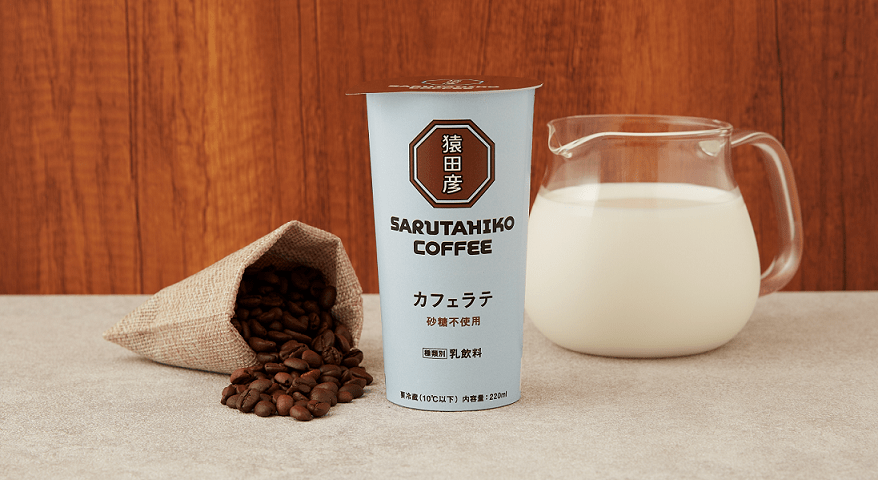 「猿田彦珈琲」こだわりのコーヒーとまろやかな味わいのミルクをあわせたカフェラテ。