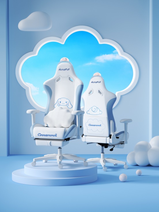 「シナモロール」が生まれた、フワフワで真っ白な雲の世界をイメージしたコラボゲーミングチェア。