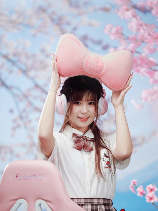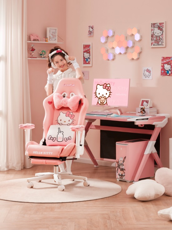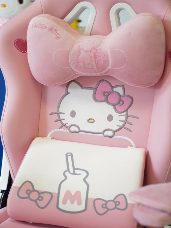 「ハローキティ」とコラボしたゲーミングチェアは、「ハローキティ」が好きなピンク色。
