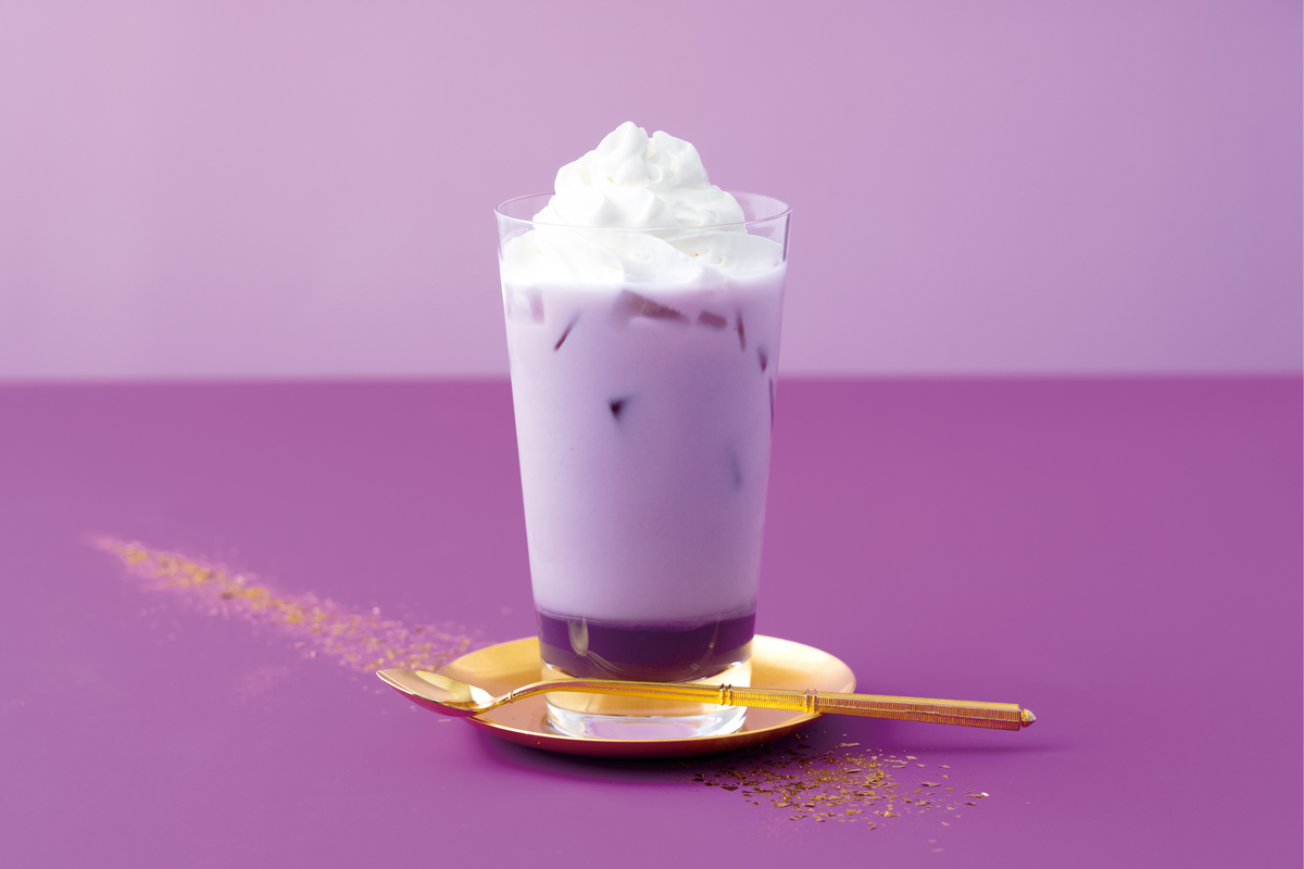 鮮やかで濃い紫色が特徴の宮崎県産紫芋と、上品な甘さの白あんをベースにしたスイーツドリンク。