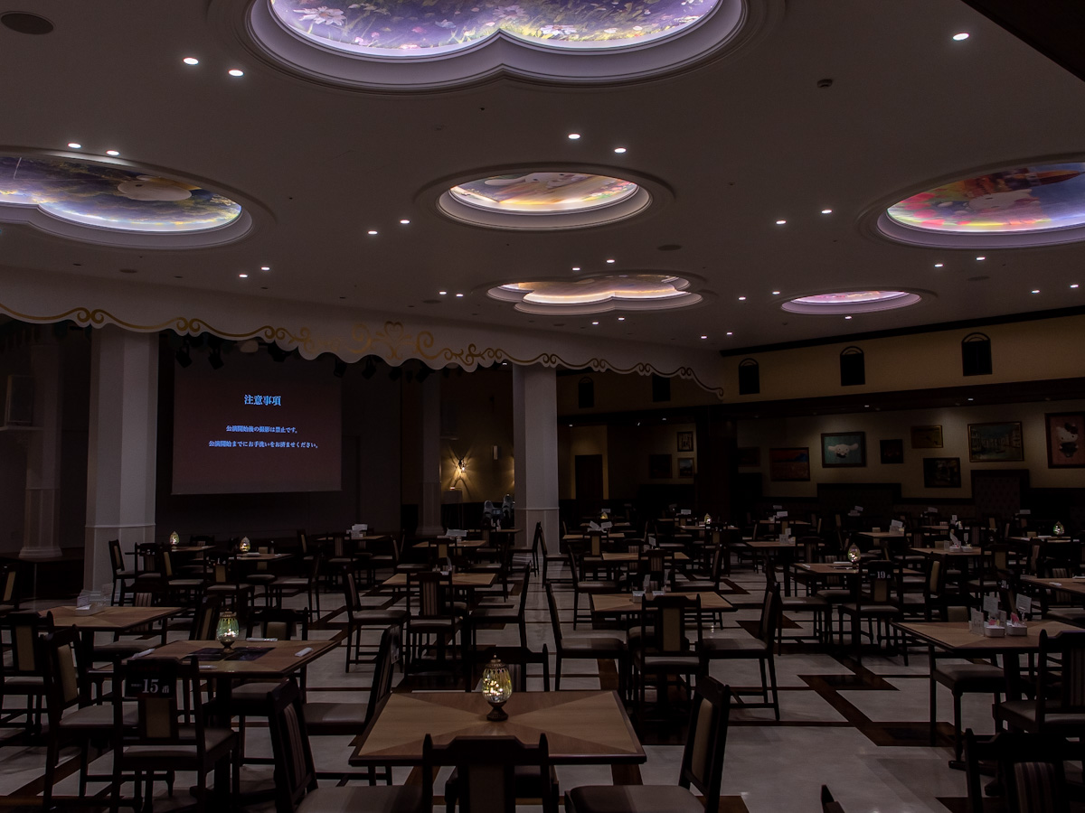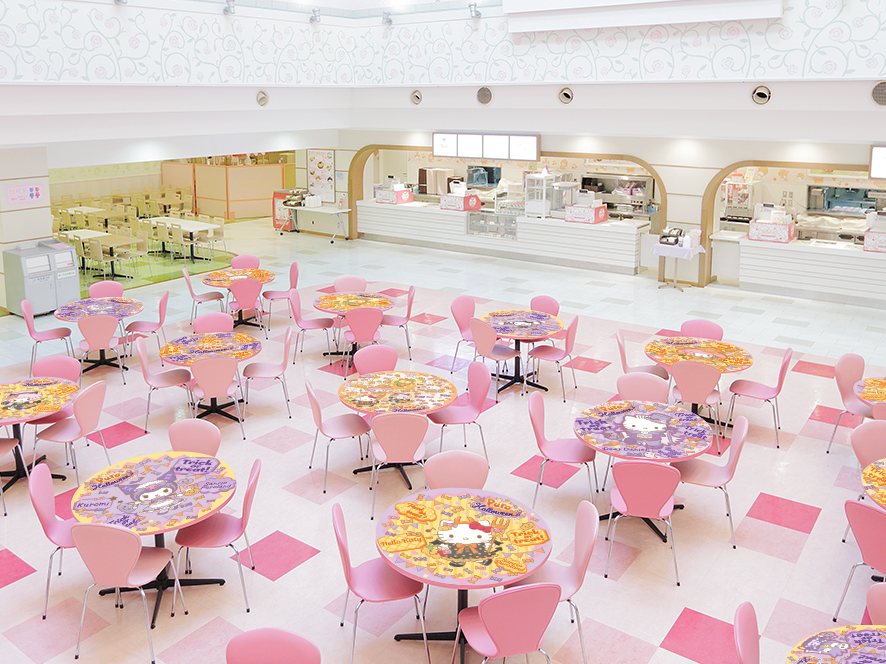 キャラクターフードコートのテーブルにも、仮装したキャラクターが描かれます。