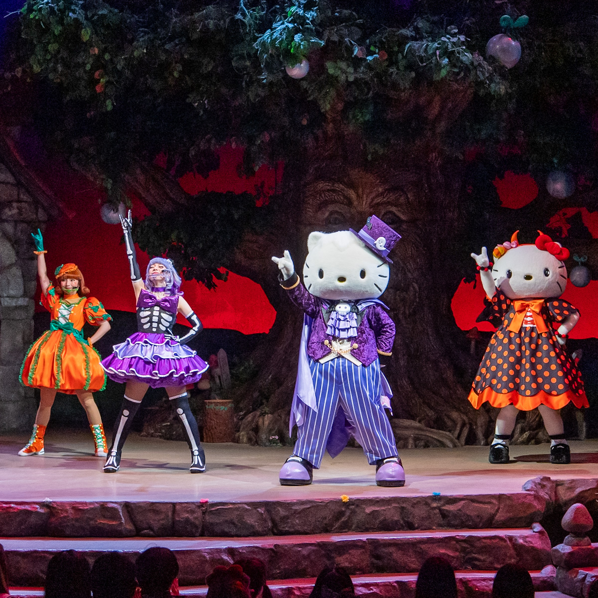 ハローキティとディアダニエルが”トリックチーム”と”トリートチーム”に分かれ、ゲームやダンスで対決する新ショー「レッツ トリック・オア・トリート!」を上演!
