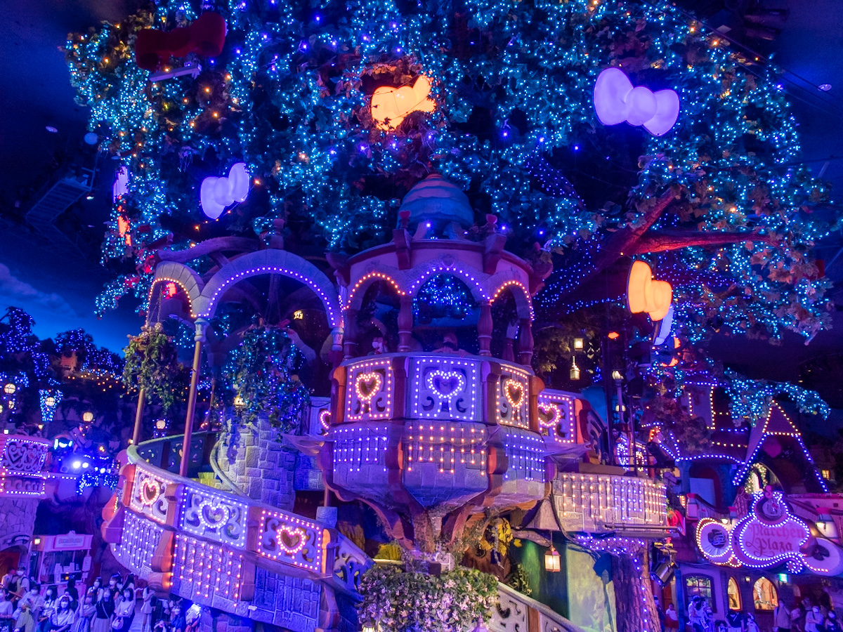 上演中、ショーの音楽やイルミネーションにあわせミラクル♡ライトが輝く演出も。