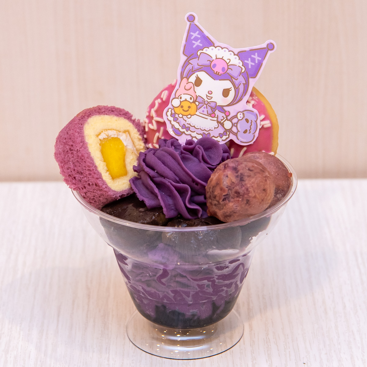 デザートには、カップケーキのドレスをかぼちゃのホイップで表現した「お菓子な♪パンプキンクリームカップケーキ」や、秋の味覚がたっぷりつまった「贅沢♡お芋パフェ」のほか、ちょっぴりダークなシナモロールがかわいい、「こわKawaii♡ごま豆乳モンブラン」など、ハロウィンを楽しむキャラクターたちのメニューが登場します。