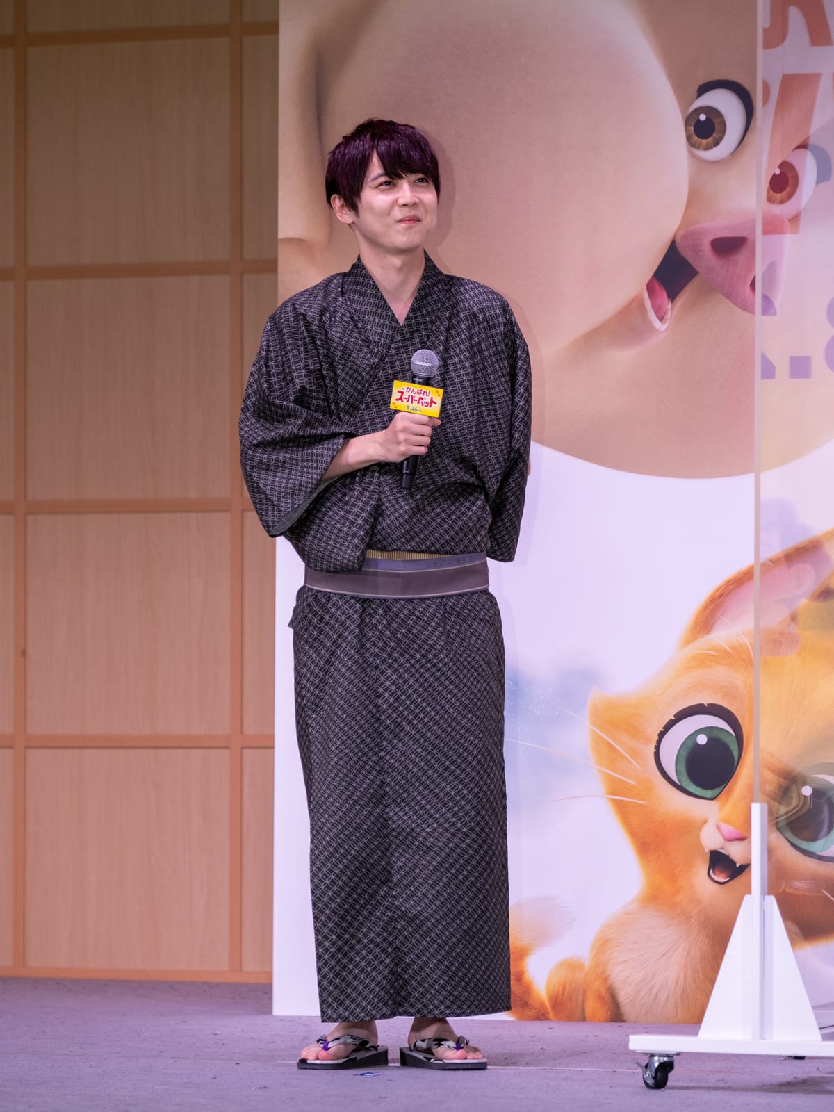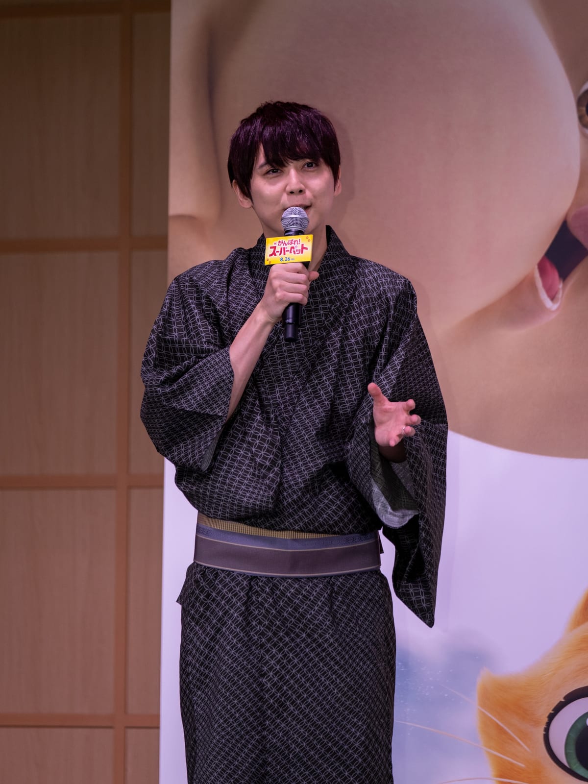 「チップ」役の梶裕貴さんらが浴衣姿で登壇。