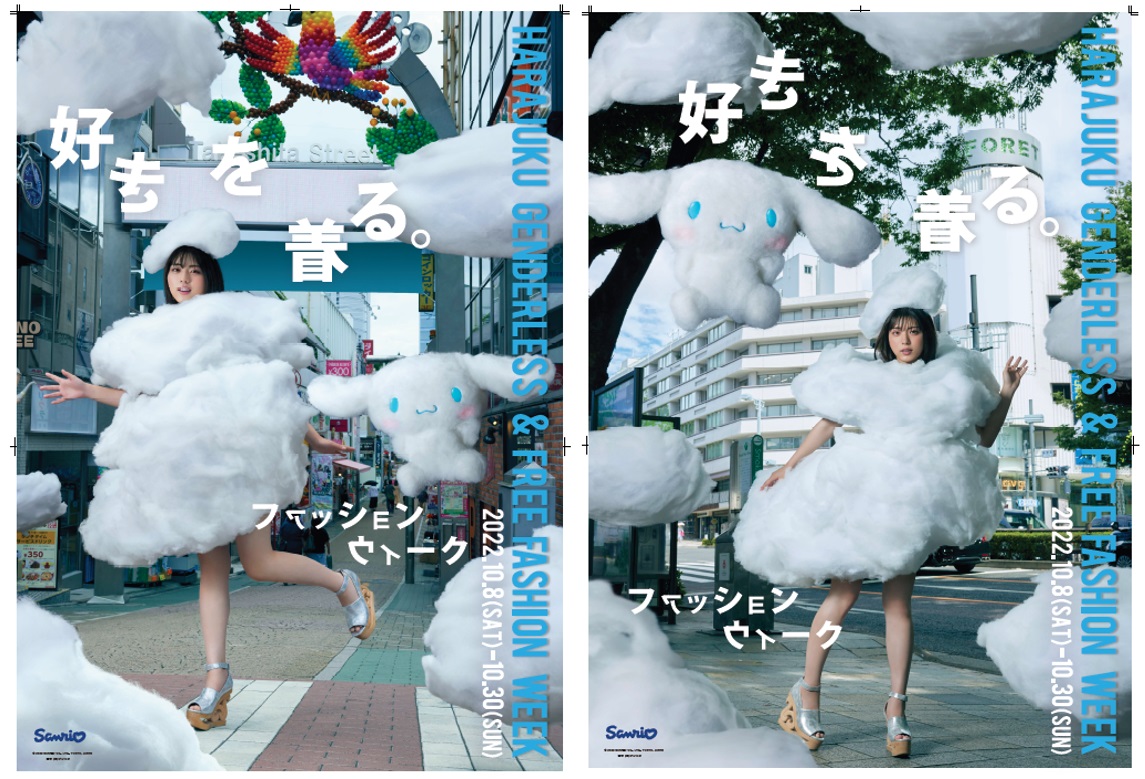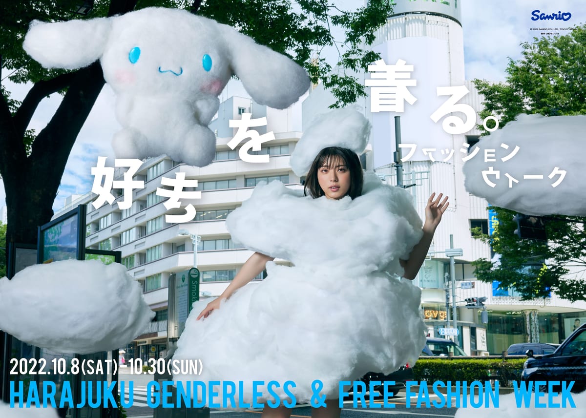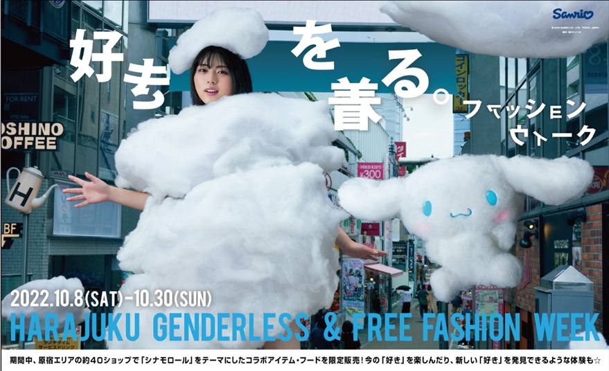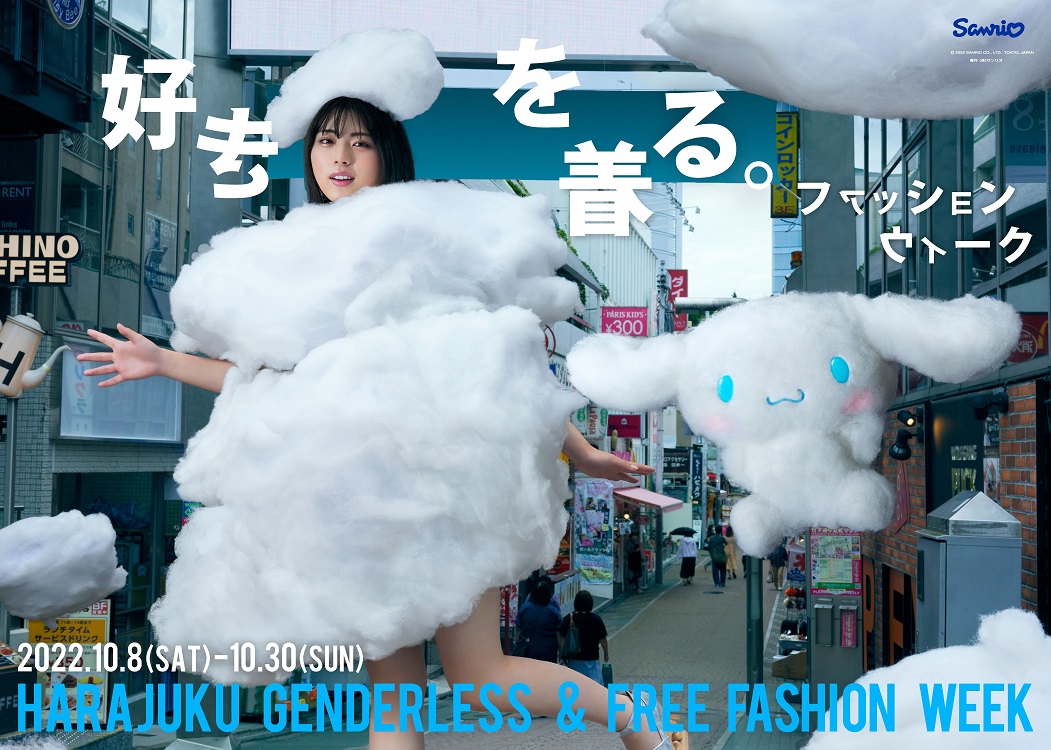 『好きを着る。ファッションウィーク HARAJUKU GENDERLESS & FREE FASHION WEEK』ではファッションをもっと自分らしく楽しめるよう「シナモロール」がナビゲーターとなり、子どものころから「シナモロール」に親しんできた世代の人たちが、ファッションを通して自分らしさを自由に表現!