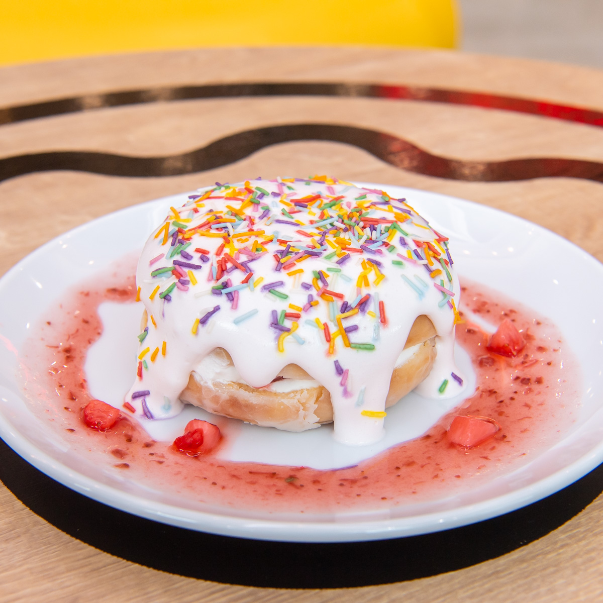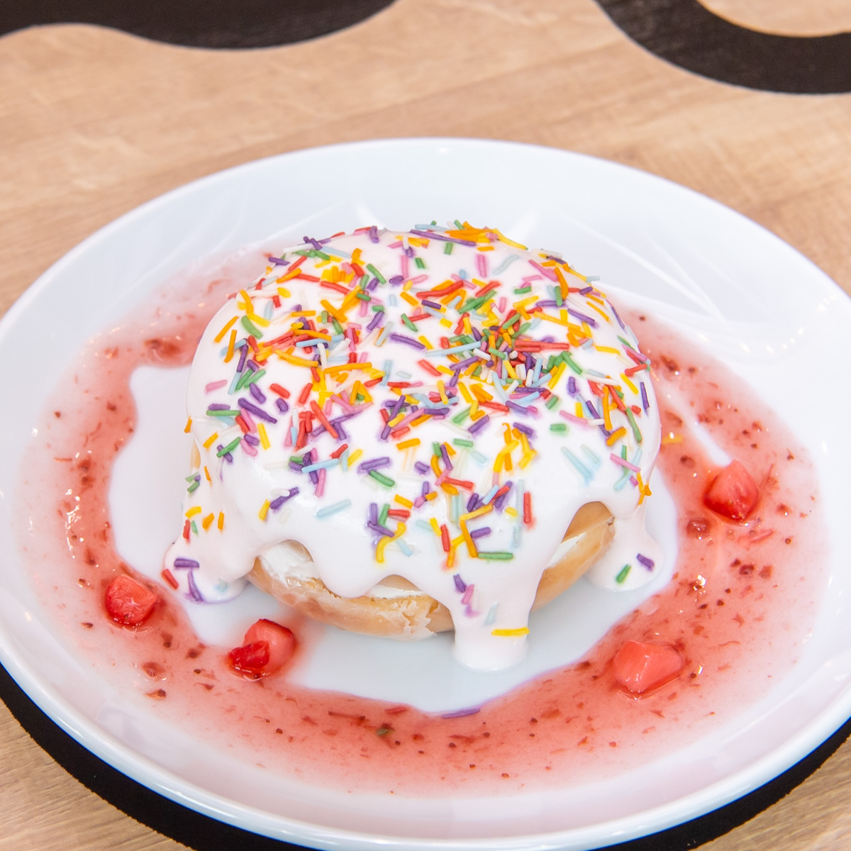 カリッとした7色のスプリンクルにつつまれる、華やかなサプライズを楽しめます。