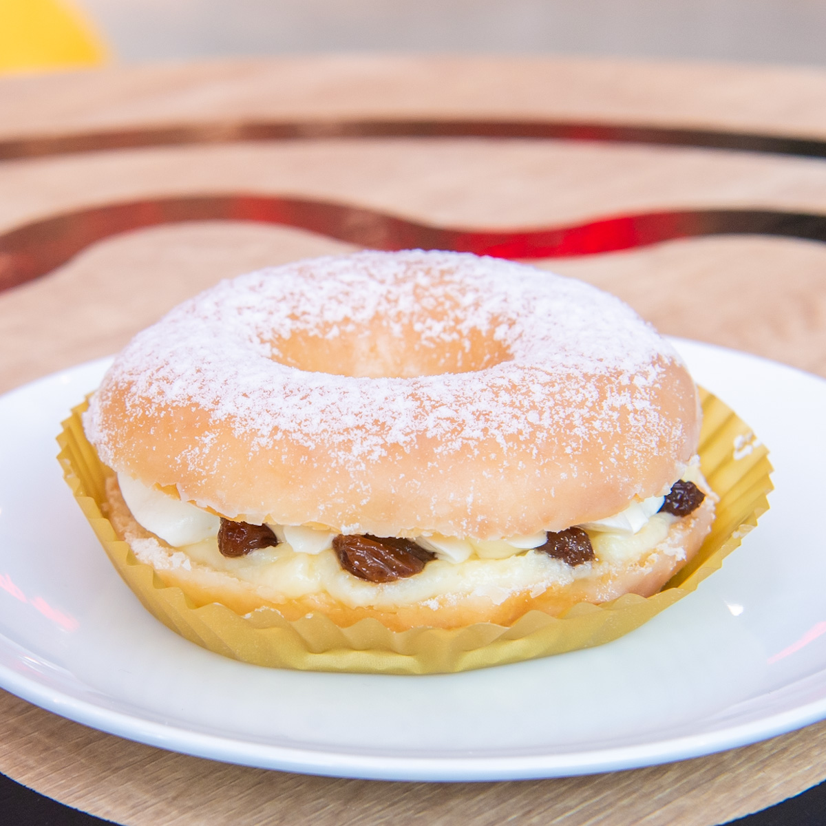 ラム酒に漬けたカリフォルニアレーズンとのマリアージュが贅沢なプレミアムドーナツです。