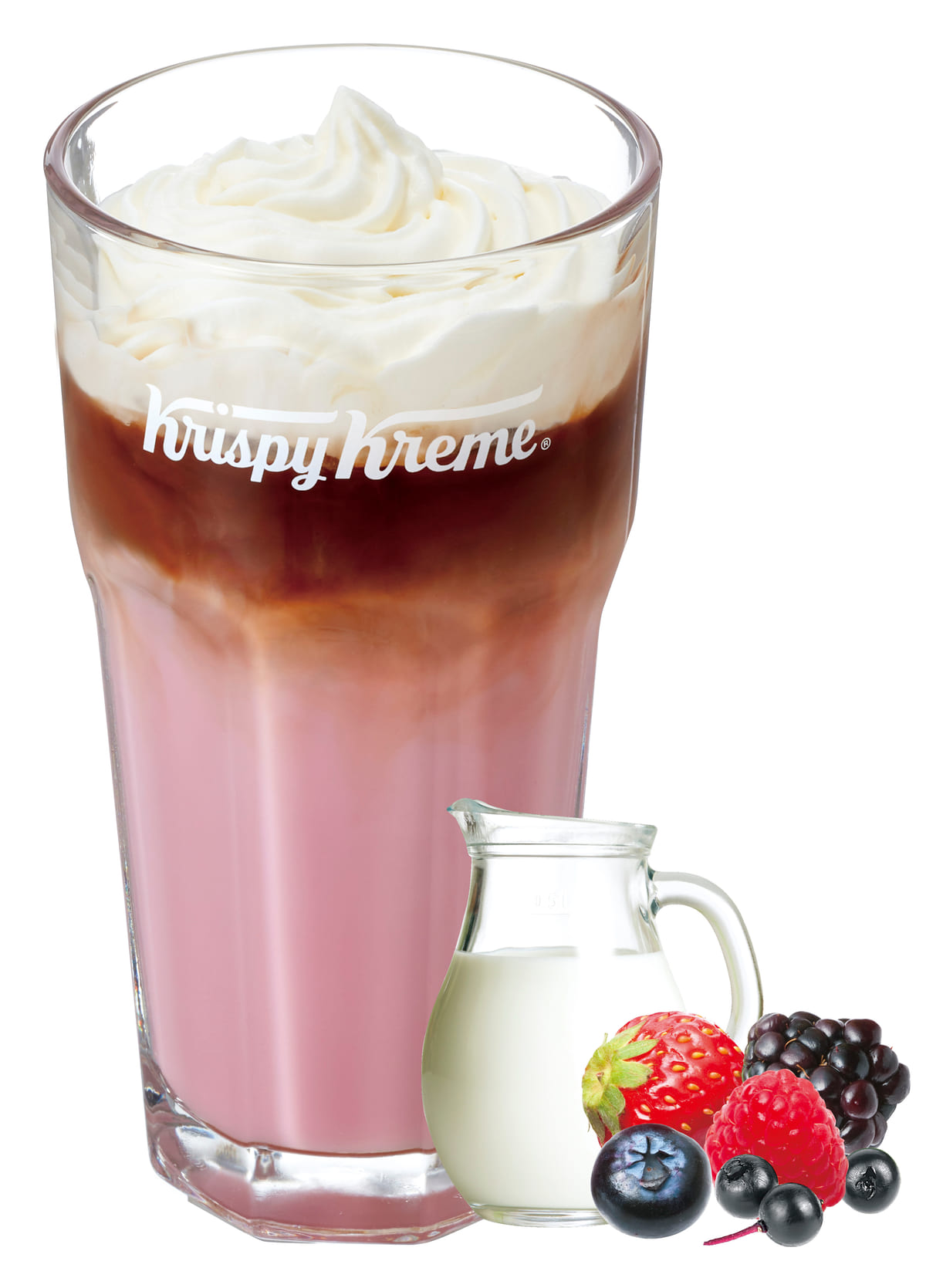 甘酸っぱいワイルドベリーシロップとやさしく溶け合うミルクを、クリスピー・クリーム オリジナルのエスプレッソで奥深い味わいに仕上げられています。